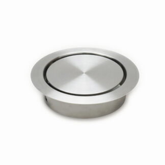 Wysokiej jakości kosz na śmieci z cichym domykiem, wykonany ze stali nierdzewnej, powierzchnia: satynowy mat, konstrukcja: okrągła ⌀136 mm (5-23/64″), AD-GD011-HL. Samozamykające się drzwi na śmieci ze stali nierdzewnej, do mebli kuchennych, gabinetu lekarskiego i wielu innych, firmy Sugatsune / LAMP® (Japonia)