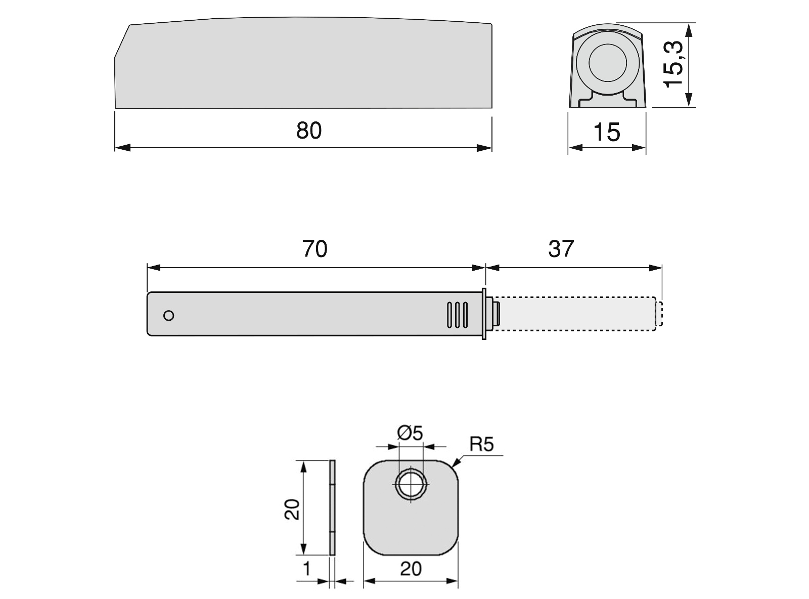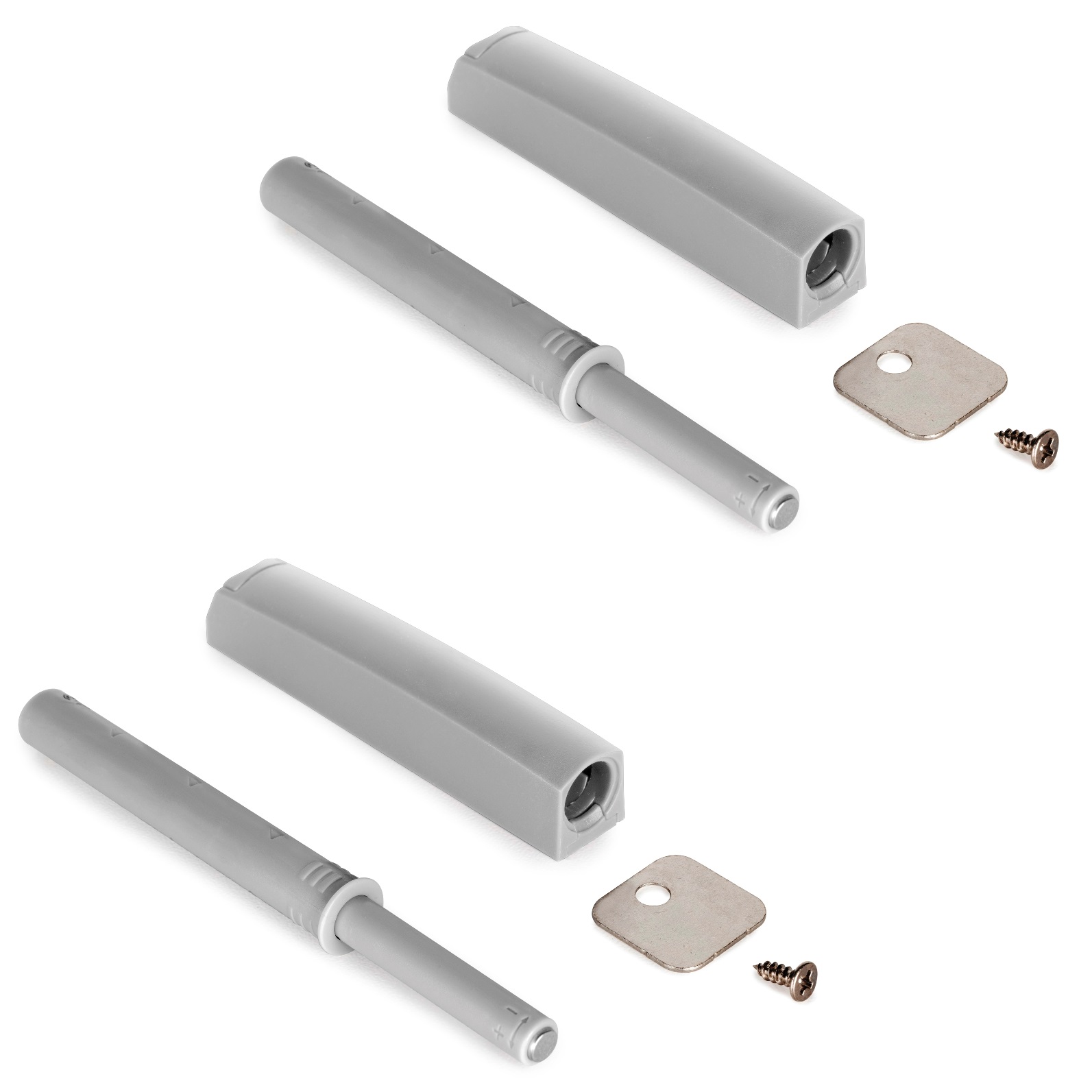 - Dwie sztuki zatrzasków dociskowych wykonane 1900321 z wytrzymałego tworzywa sztucznego, szare, wersja: magnetyczna