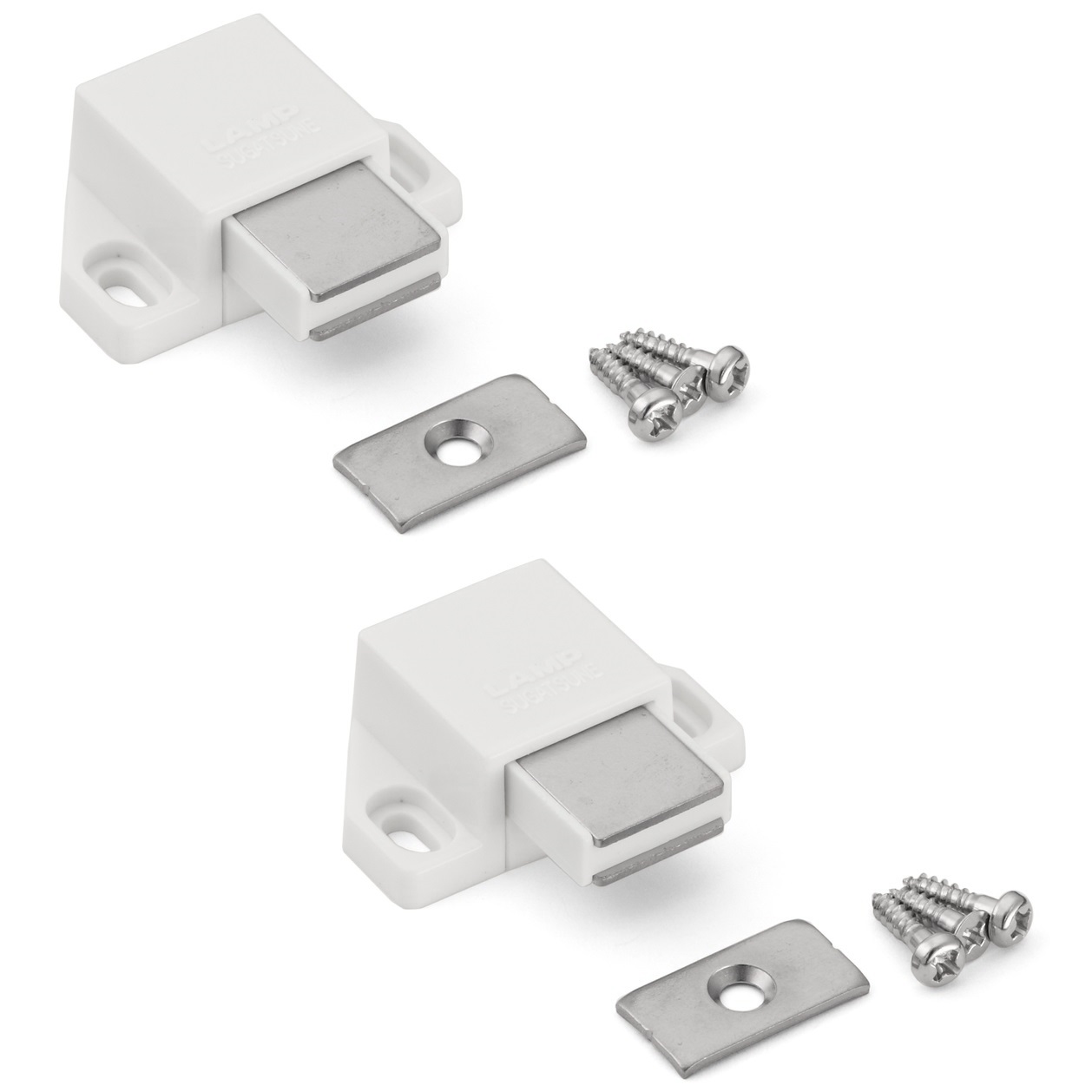 - 2 sztuki zatrzasków magnetycznych 140-050-054 wykonane z metalu i wytrzymałego tworzywa sztucznego, białe