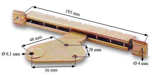 - Dźwignie zapadki 04.05.015-2 (04.05.015) posiadają trzy otwory montażowe o średnicy ⌀6,1 mm (15/64″)