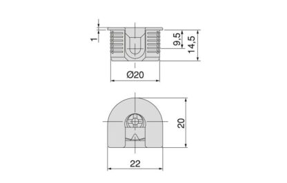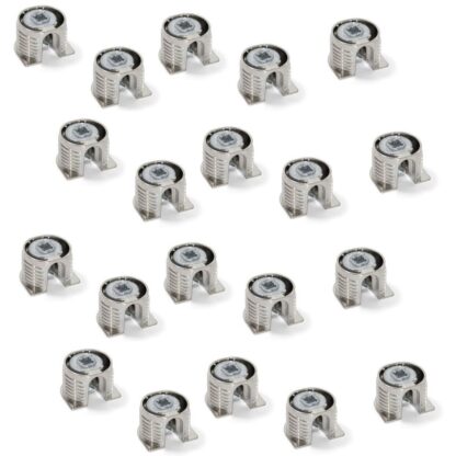 Typowe zastosowanie: Wkładanie do półek lub przegród z otworem ⌀20 mm (25/32″) i głębokością 14,5 mm (37/64″) w połączeniu z pasującymi kołkami mimośrodowymi.