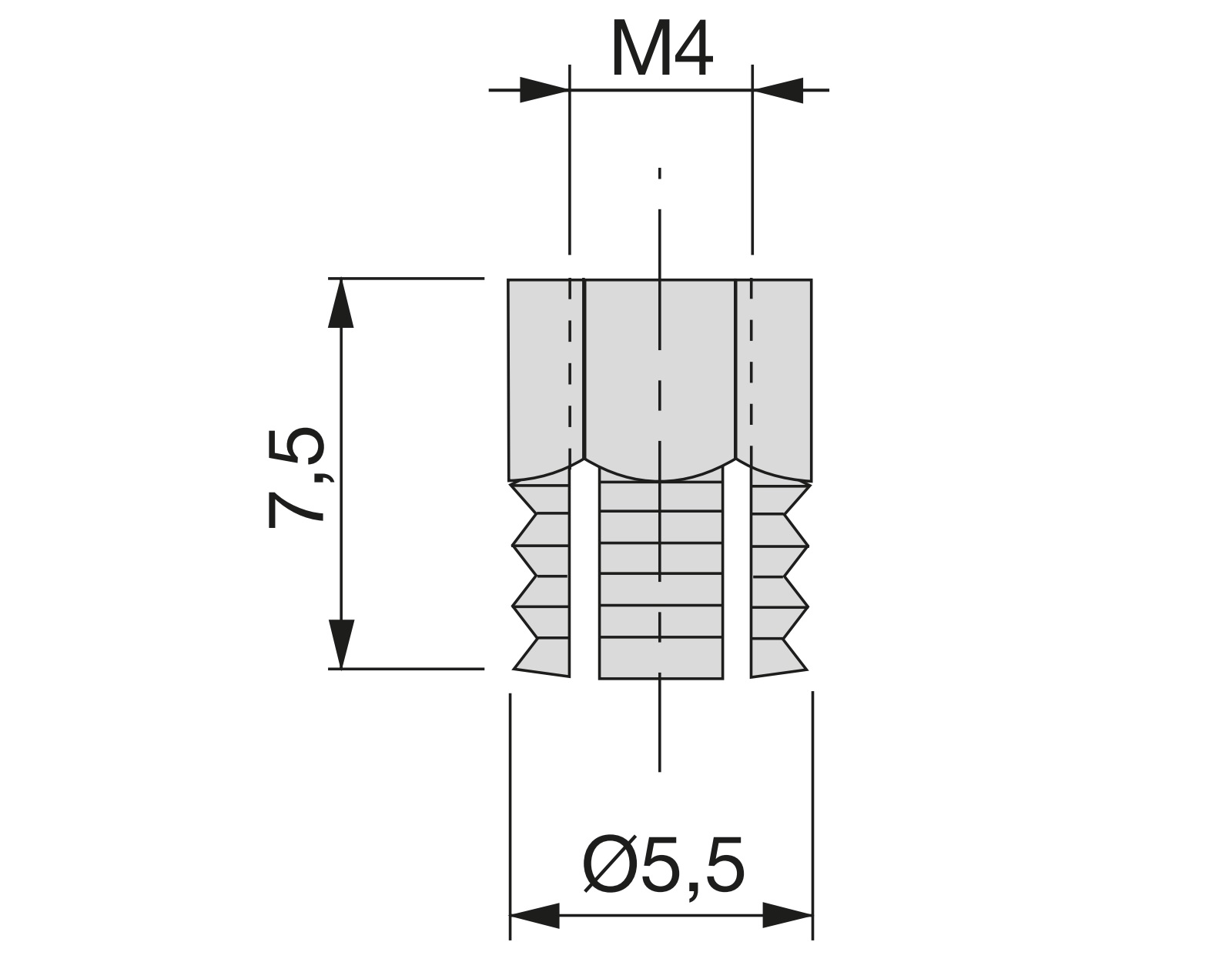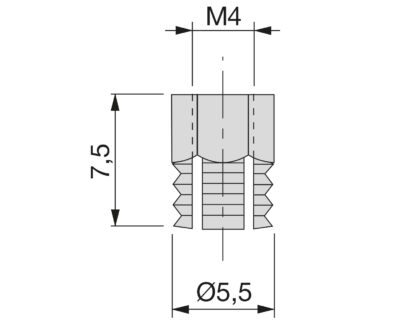 - Gniazdo rozszerzające z gwintem wewnętrznym M4 przeznaczone jest do wciskania w wywiercony otwór
