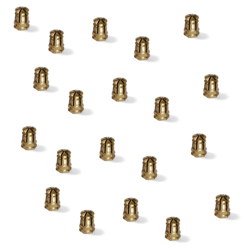 - 20-częściowa tuleja rozprężna z gwintem wewnętrznym M6 8008202 wykonana z solidnego i wytrzymałego mosiądzu, mosiądzu
