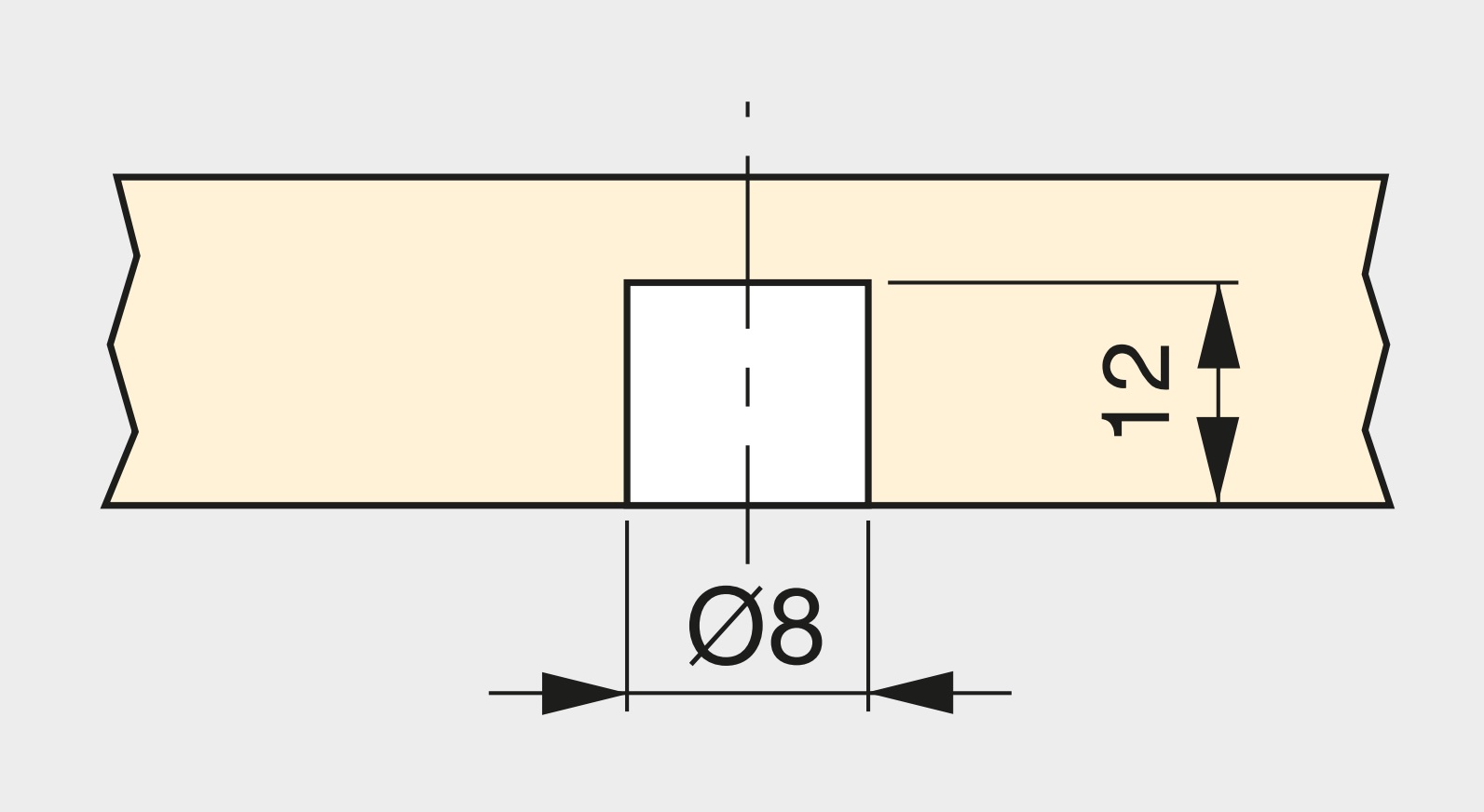 - Dla optymalnego chwytu zalecamy średnicę wiertła od 8,0 do 8,2 mm – w zależności od rodzaju drewna