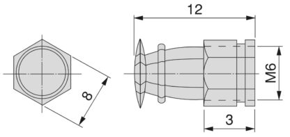- Tuleja rozprężna z gwintem wewnętrznym M6 przeznaczona jest do wciskania w wywiercony otwór