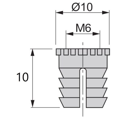 - Gniazdo rozprężne z gwintem wewnętrznym M6 przeznaczone jest do wciskania w wywiercony wcześniej otwór
