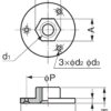 - Górna płyta posiada trzy otwory montażowe o średnicy (⌀d2) ⌀3,2 mm (1/8″) i jest przymocowana do dolnej powierzchni mebla za pomocą trzech (brak w zestawie)