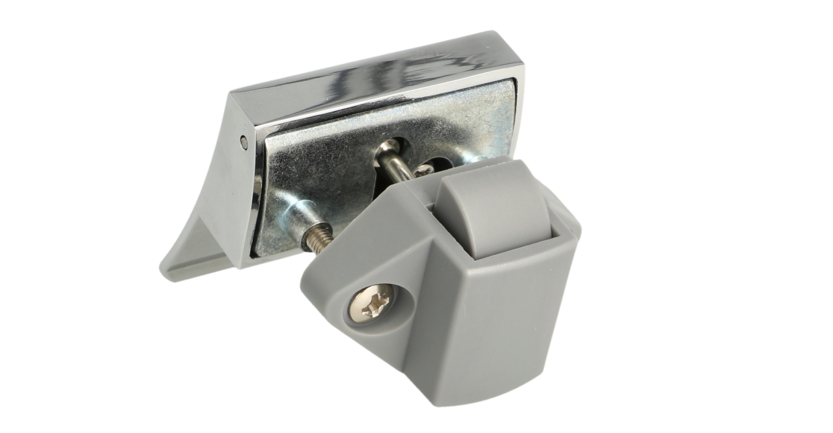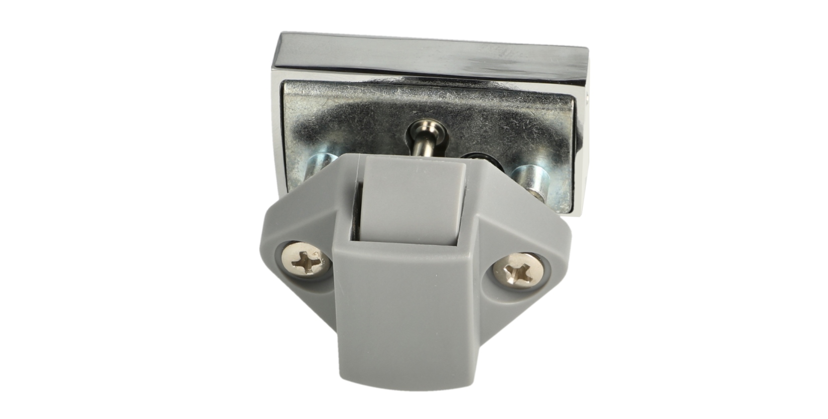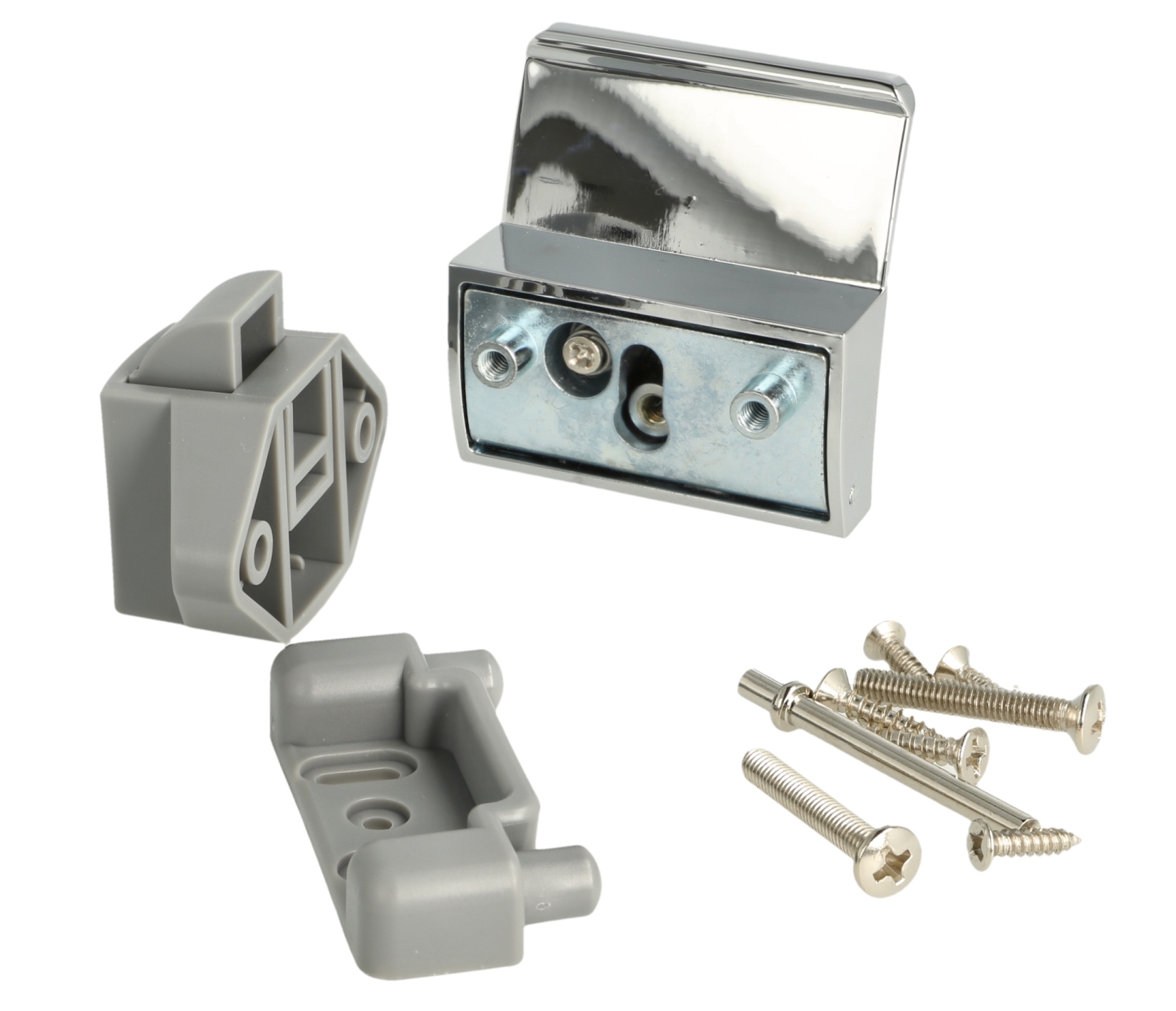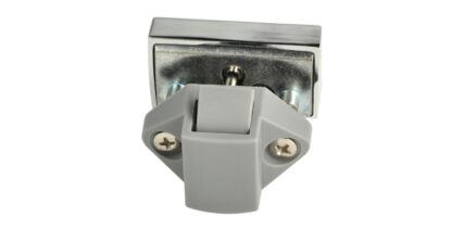 Praktyczny zamek zatrzaskowy 14.03.075-0, z amortyzatorem sprężynowym do cichego domykania i zamkiem samoblokującym, wykonany z litego odlewu cynkowego, powierzchnia: chromowana, wykonanie: kwadratowe