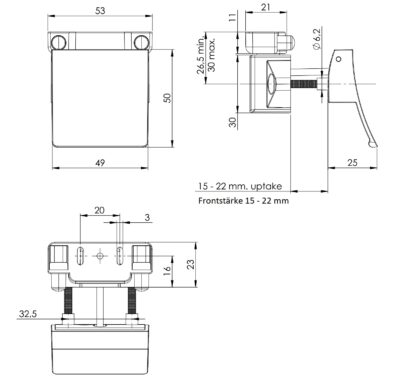 Uchwyt do podnoszenia 14.03.075-0 nadaje się do drzwi o grubości od 15 mm (19/32″) do 22 mm (55/64″).