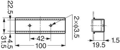 - Do montażu z przodu wykonuje się wycięcie o długości 94 mm (3-45/64″) i szerokości 22 mm (55/64″)