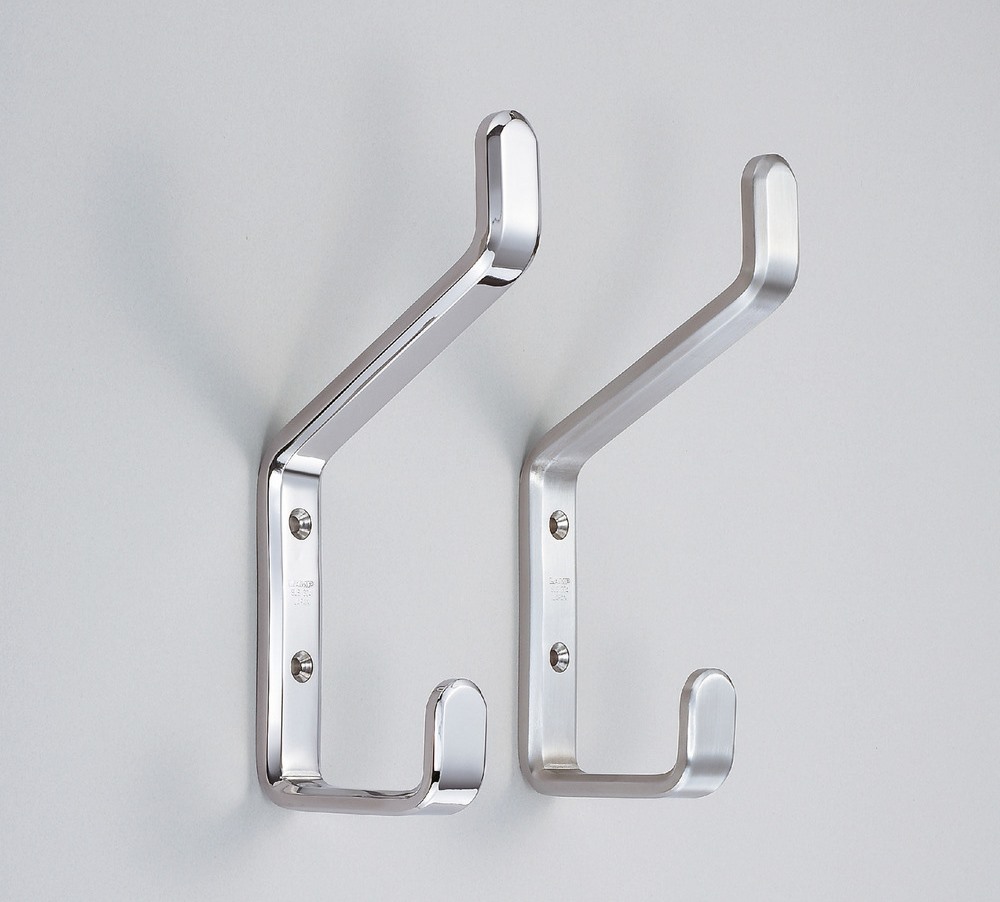 Wytrzymały podwójny hak XL-SB-210-S ma częściowo polerowaną, a częściowo ręcznie szczotkowaną powierzchnię ze stali nierdzewnej, która jest odporna na codzienne zarysowania.