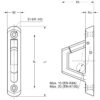 - Hak z klapką bezpieczeństwa EN-K84 posiada dwa otwory montażowe w odległości (P) 64 mm (2-33/64″)