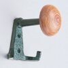 Wysokiej jakości wieszak na ubrania, z wytrzymałego stopu aluminium (aluminium), powierzchnia: zielona patyna, z końcówką haczyka z litego drewna, SW-B-75