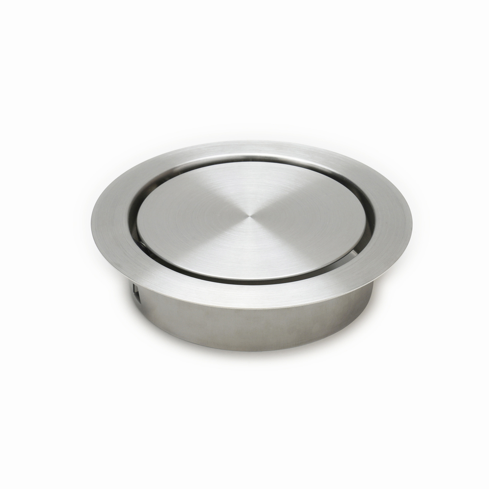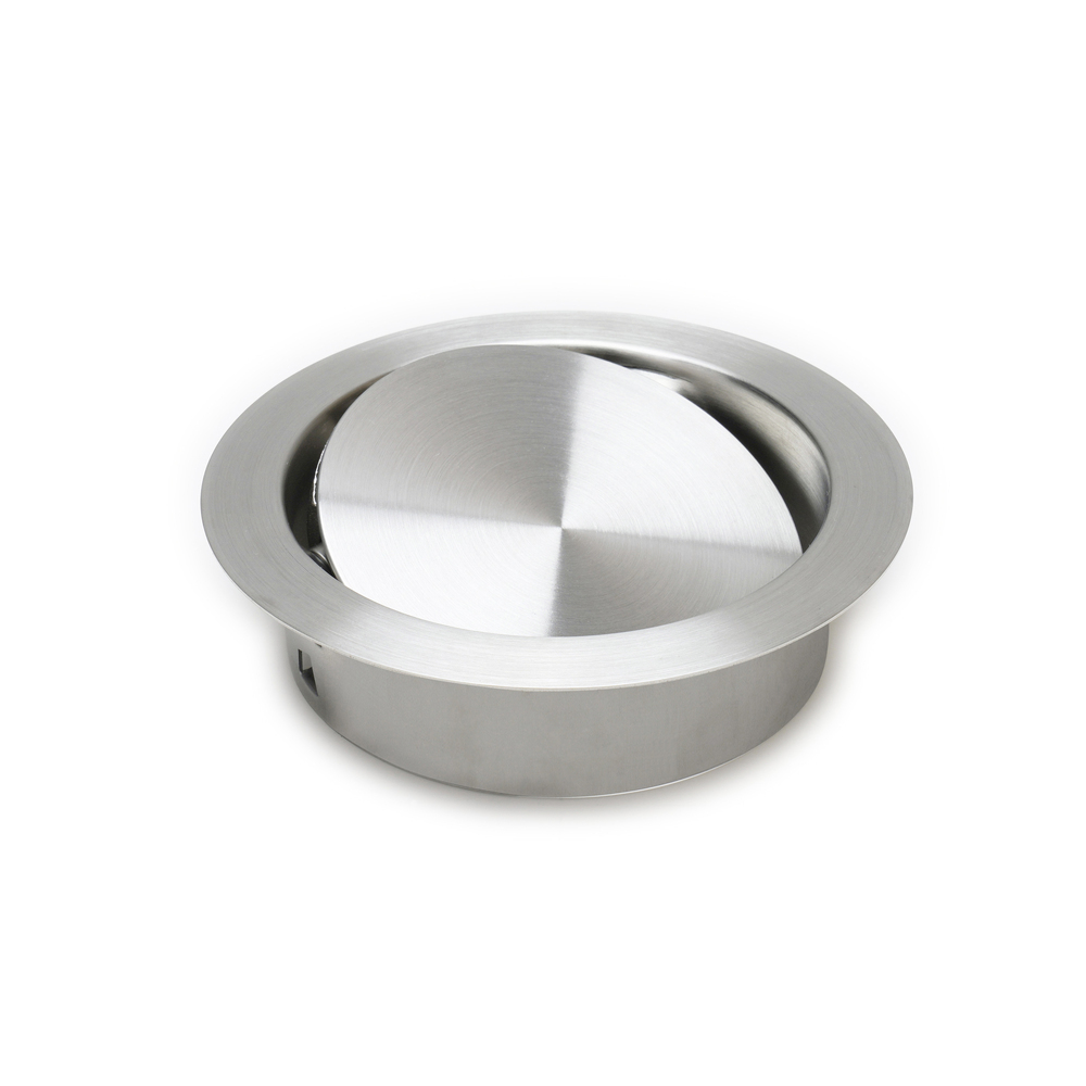 Wysokiej jakości samozamykająca się klapa odpływowa ⌀136 mm (5-23/64″), z przepustnicą z cichym domykiem, wykonana ze stali nierdzewnej V2A (SUS304 lub 1.4301), powierzchnia: matowa satyna, AD-GD011-HL, wersja: okrągła