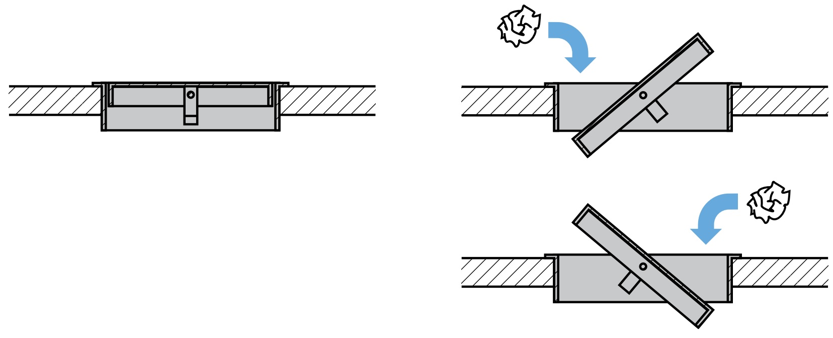 Wysokiej jakości okrągły właz na śmieci, wahadłowy, do montażu poziomego, AD-DH015-HL, 170 mm, firmy Sugatsune, wykończenie satynowe. Aplikacja