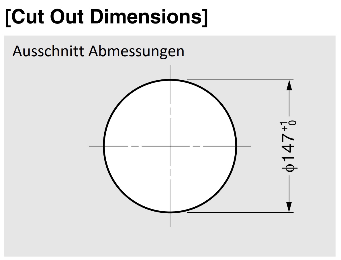 • Aby zainstalować klapę odpływową AD-DH015-HL, należy wywiercić otwór w powierzchni o średnicy ⌀147 mm (5-25/32″) (więcej szczegółów patrz