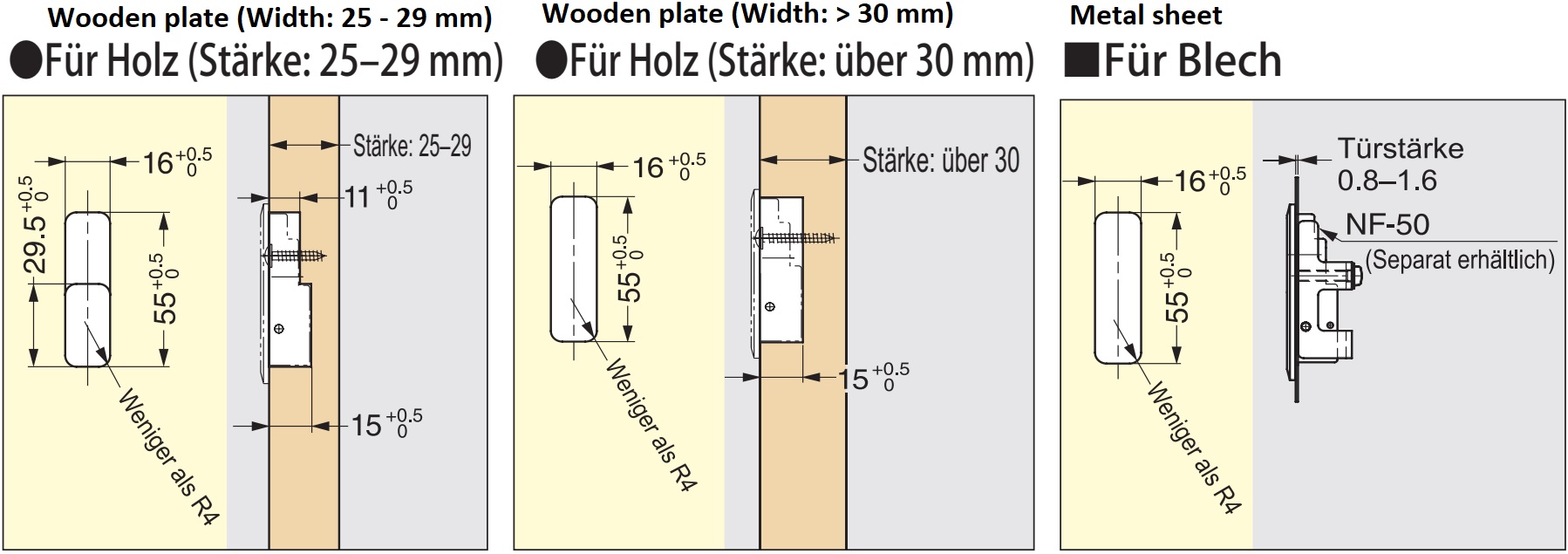 - Uchwyt montażowy L.NF-50 jest dostępny do montażu w blasze (więcej szczegółów patrz