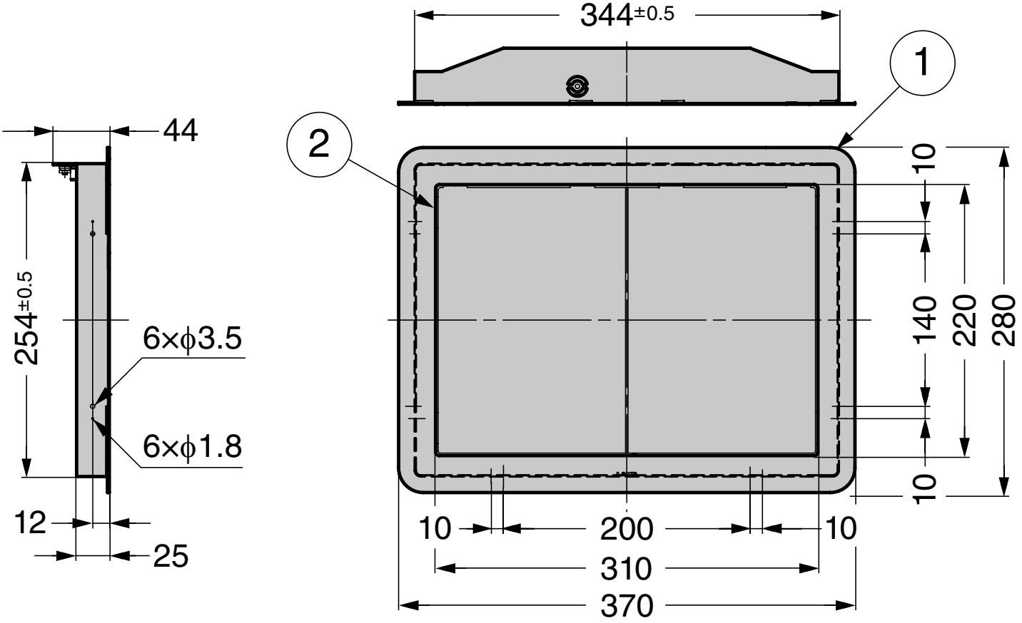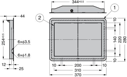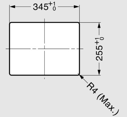 - Aby zamontować klapę odpływową AZ-DD310-HL, w ścianie korpusu należy wykonać wycięcie o wymiarach 345 mm (13-37/64″) x 255 mm (10-3/64″)