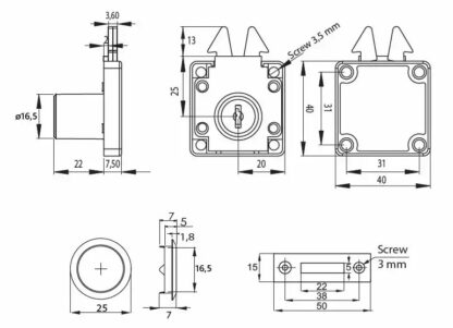 - Wysokość i szerokość zamka do drzwi przesuwnych: 40 mm (1-37/64″) x 40 mm (1-37/64″)