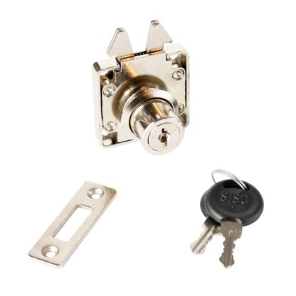 Praktyczny zamek do drzwi przesuwnych 14.01.450-1 służy do zamykania rolet i drzwi przesuwnych meblowych.