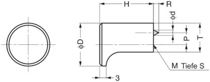 - Uchwyt gałki meblowej posiada otwór montażowy o głębokości (S) 13,5 mm (17/32″) z gwintem wewnętrznym