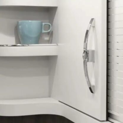 Wysokiej jakości klamka z przyciskiem 14.03.072-0 to klamka meblowa z funkcją blokady, która po wpuszczeniu zapewnia, że drzwi mebla lub drzwi szafy nie otworzą się przypadkowo podczas podróży lub lotu.