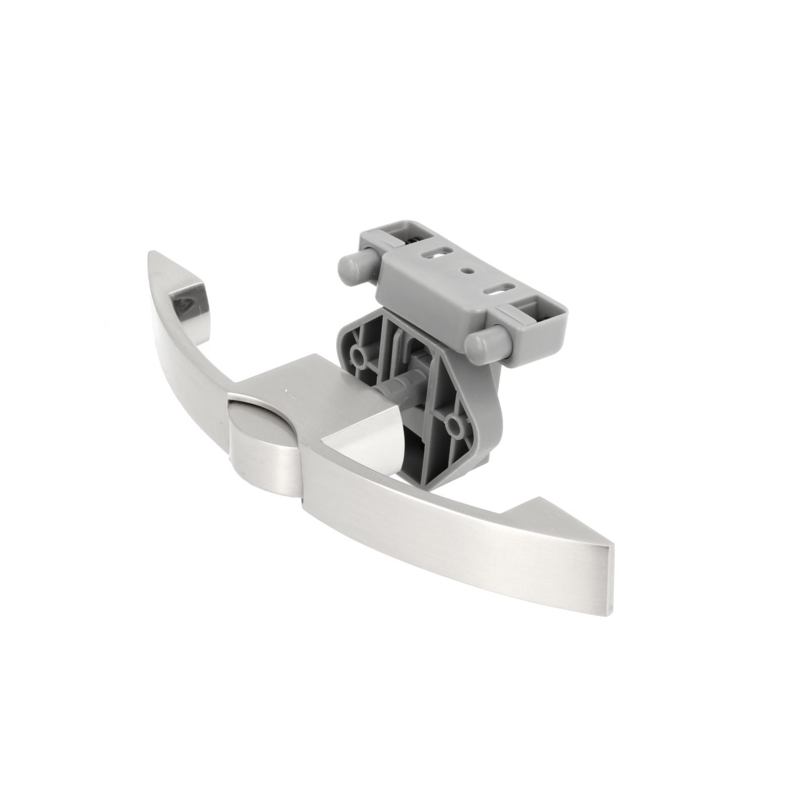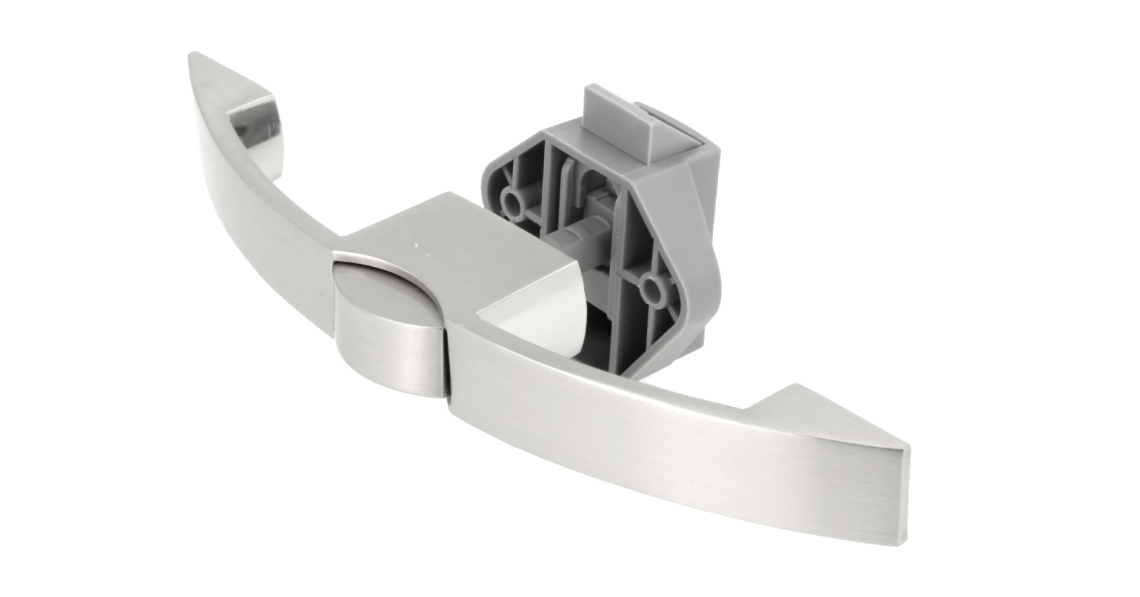 Praktyczna klamka z przyciskiem 14.03.072-0, z amortyzatorem sprężynowym do cichego domykania i samoblokującym zamkiem, wykonana z litego odlewanego ciśnieniowo, powierzchnia: wygląd stali nierdzewnej