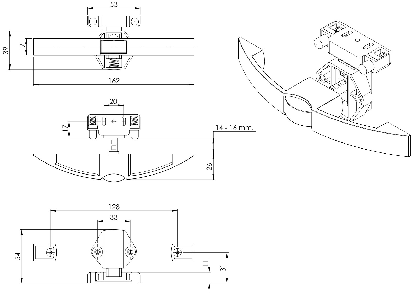 Zamek klamki 14.03.072-0 służy jako praktyczna klamka o głębokości 26 mm (1-1/32″).