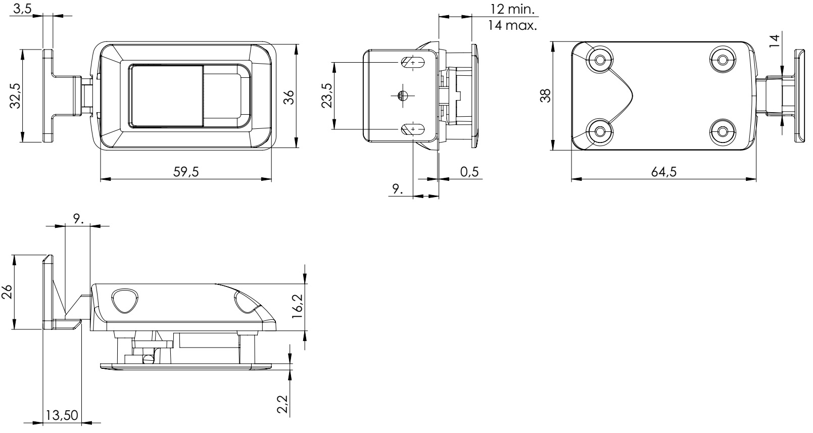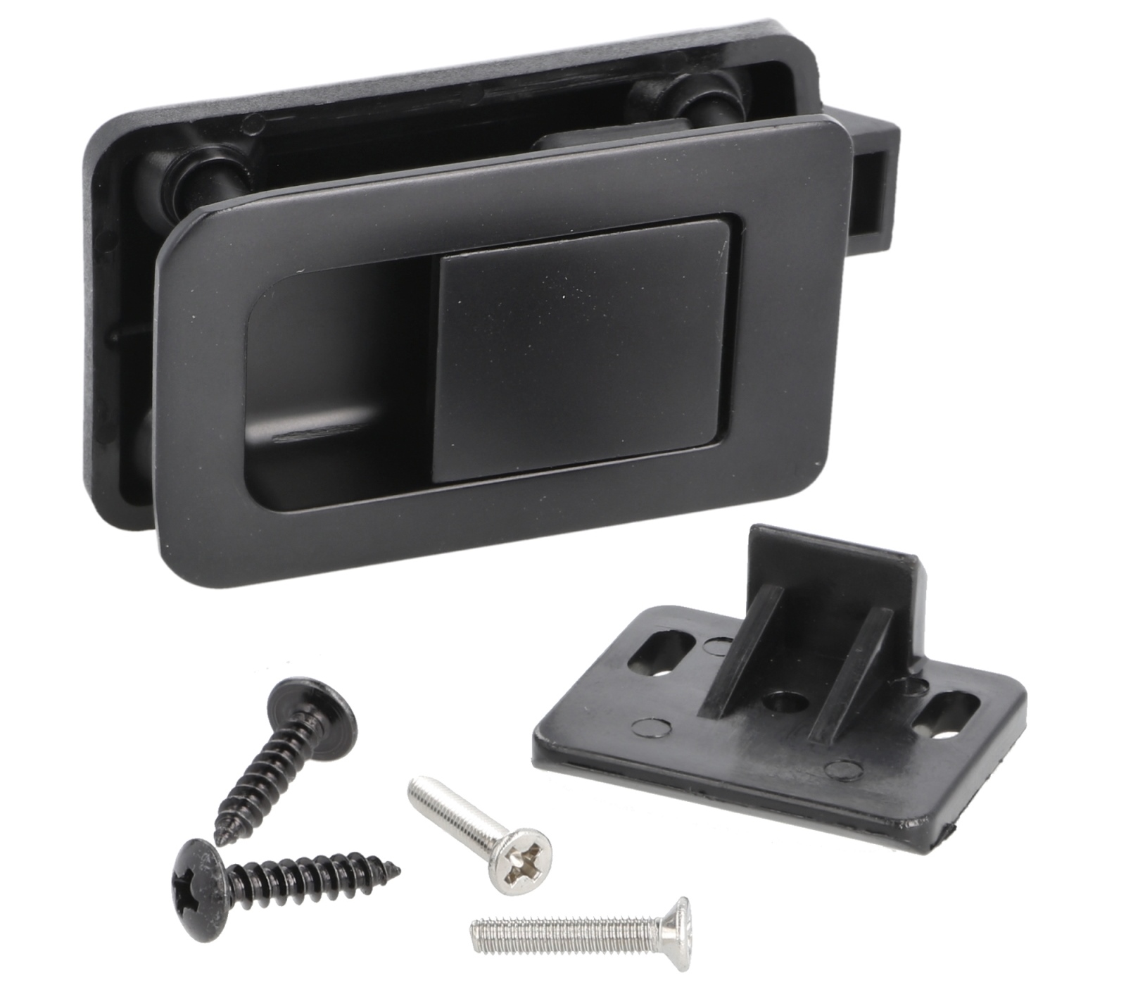 Wysokiej jakości zamek zatrzaskowy 14.03.091-0 to klamka meblowa z funkcją blokowania, która po zamknięciu zapewnia, że drzwi mebli, drzwi szafki lub szuflady nie otworzą się przypadkowo podczas podróży lub lotu.