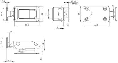 Praktyczny zamek zatrzaskowy 14.03.091-0, ze składanym uchwytem wlotowym, wykonany z litego odlewanego ciśnieniowo, powierzchnia: