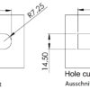 Przycisk 14.03.042-0 nadaje się do drzwi o grubości od 12 mm (15/32″) do 16 mm (5/8″).