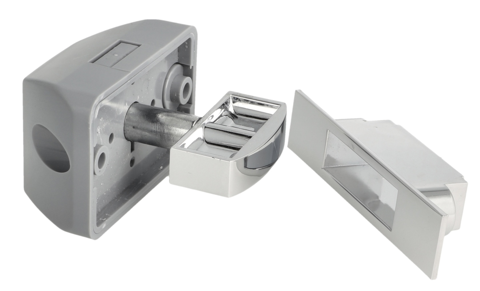 Wysokiej jakości zamknięcie na przycisk 14.03.042-0 to klamka meblowa z funkcją blokowania, która po wpuszczeniu zapewnia, że drzwi meblowe lub drzwi szafy nie otworzą się przypadkowo podczas podróży lub lotu.