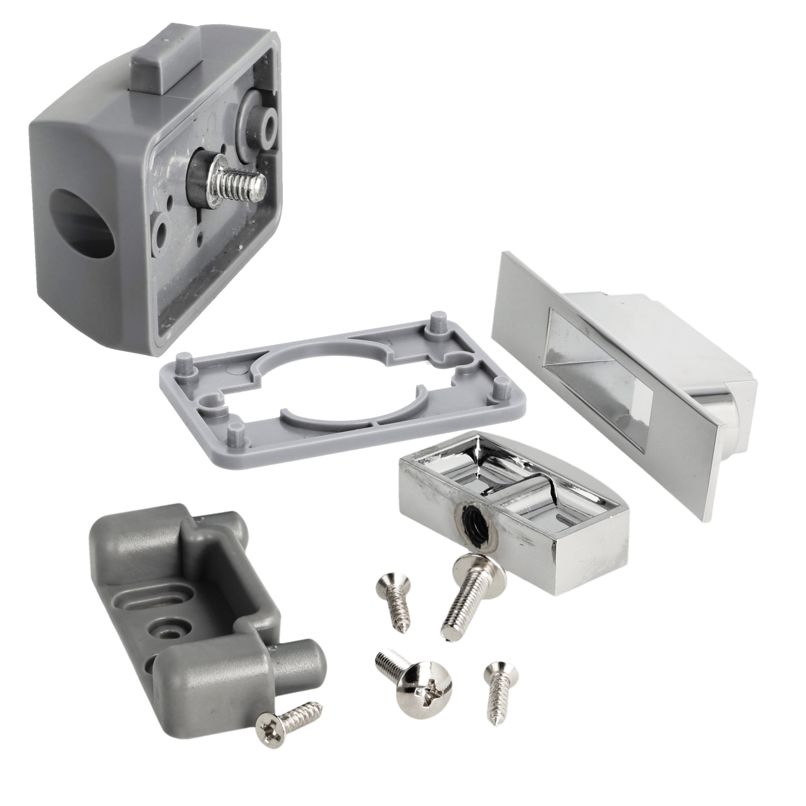 - 1-częściowy zatrzask 14.03.042-0 z litego odlewu cynkowego, chromowany, wersja: prostokątna
