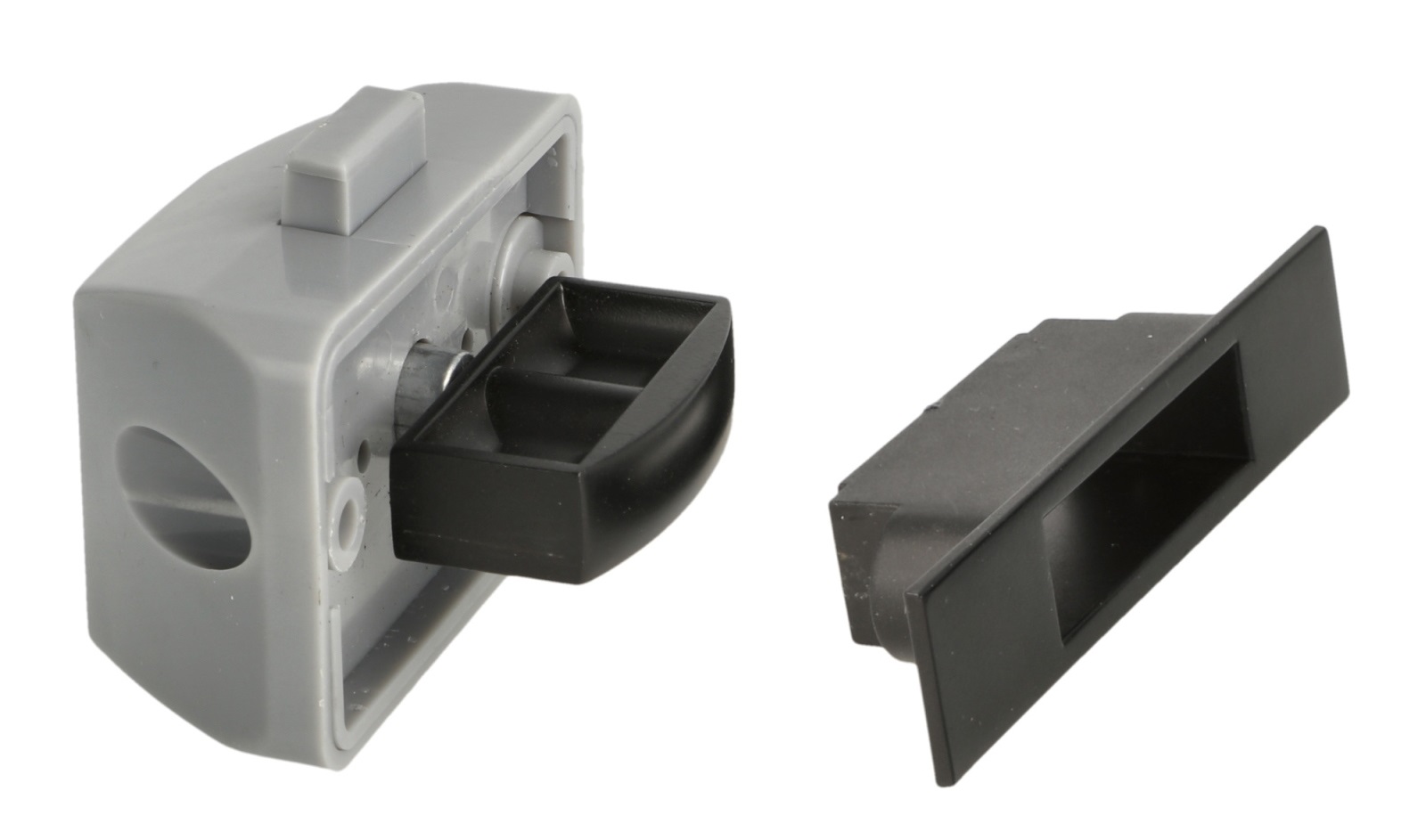 Wysokiej jakości zamknięcie na przycisk 14.03.043-0 to klamka meblowa z funkcją blokowania, która po wpuszczeniu zapewnia, że drzwi mebla lub drzwi szafy nie otworzą się przypadkowo podczas podróży lub lotu.