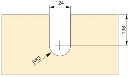 • Środek otworu powinien znajdować się na wewnętrznej krawędzi wycięcia
