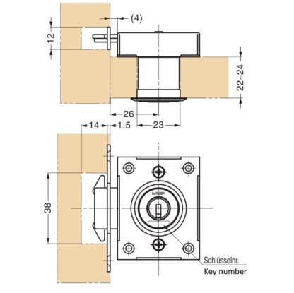 - Zamek z wgłębieniami do rolet i drzwi przesuwnych, do przykręcania