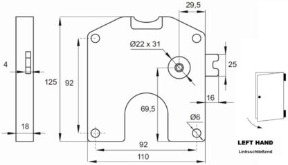 Zamek depozytowy na monety, wykonany z metalu i wytrzymałego tworzywa sztucznego, powierzchnia: ciemnoszary, 14.60.249-C, rozmiar: 110 mm (4-21/64″), wersja: zamykana z lewej strony