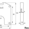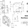 - Zamki pastylkowe 14.60.250-C posiadają cztery otwory montażowe o średnicy ⌀6,2 mm (1/4″) mm