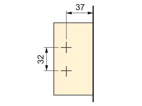- Otwory montażowe płyty montażowej są oddalone od siebie o 32 mm (1-17/64″)